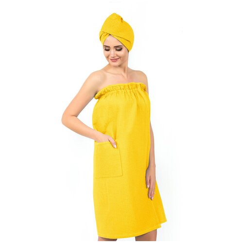 Набор для бани и сауны (женский) - Желтый - вафельный, АртПостель, парео+чалма