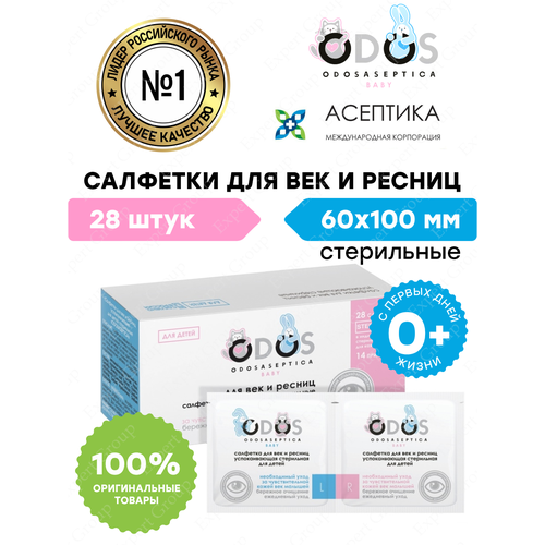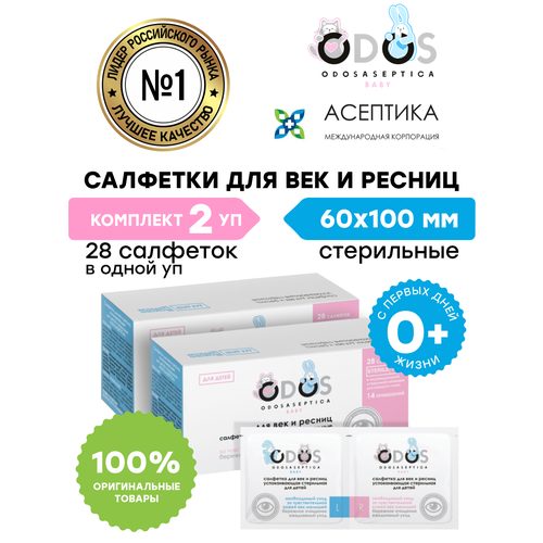 Салфетки влажные для детей Асептика стерильные ODOSASEPTICA 60х100 Комплект Салфетки для век и ресниц успокаивающие для детей стерильные ODOSASEPTICA 60х100 мм. х 2 шт