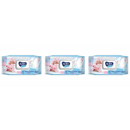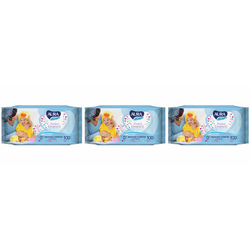 Влажные салфетки Aura Ultra Comfort для детей с алоэ и витамином Е клапан, 100 шт, 3 уп.