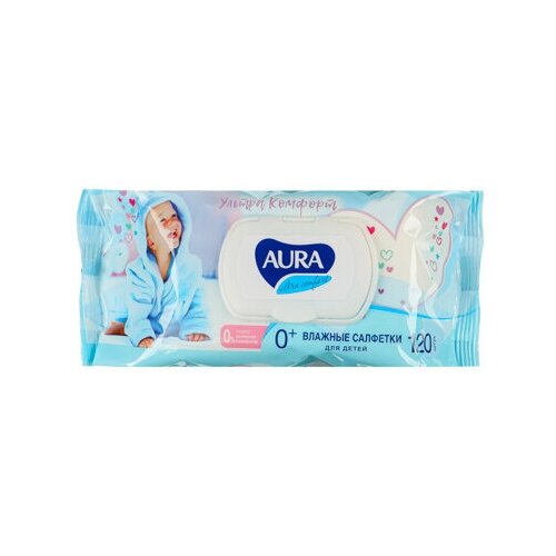 Салфетки влажные Aura Ultra comfort, для детей, 120 шт, с крышкой