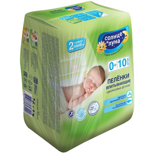Одноразовая пеленка Aura Солнце и Луна 60х60, 10 шт.
