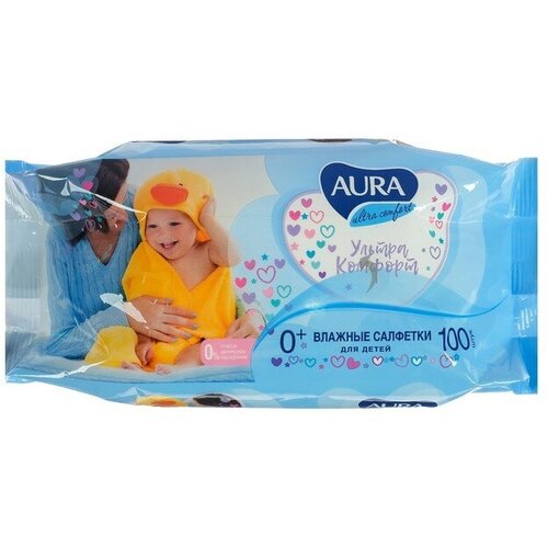 Влажные салфетки Aura Ultra Comfort, пластиковая крышка, 100 шт., 1 уп.