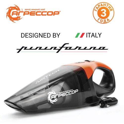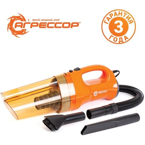 Пылесос Автомобильный "Агрессор", 12V, Cyclonic Action, Мощность 85W, Двойной Фильтр, Пылесборник 470 Мл, 4 М Шнур, 4 Насадки.