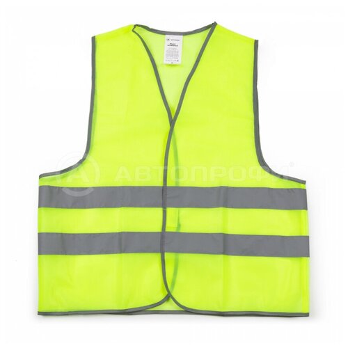 Жилет светоотражающий AUTOPROFI GL-210 LM, ГОСТ 12.4.281-2014, Св/отражающие полосы, липучка, размер 52-54/170-176, оксфорд 210D лайм