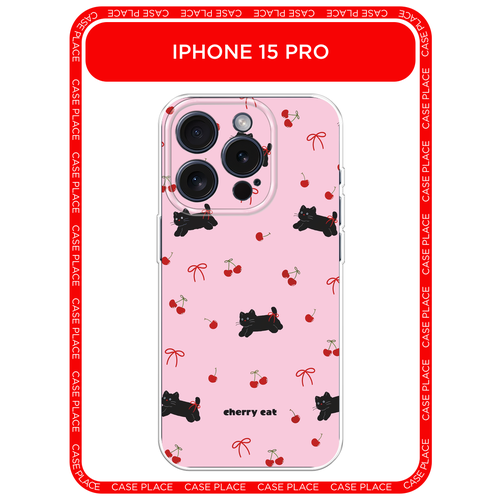 Чехол на Apple iPhone 15 Pro / Айфон 15 Про с принтом cherry cat