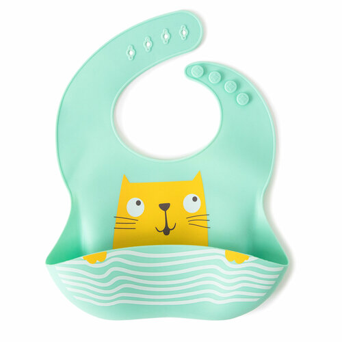 Нагрудник силиконовый с кармашком, Baby Nice, 21х28, "Котик", бирюзовый