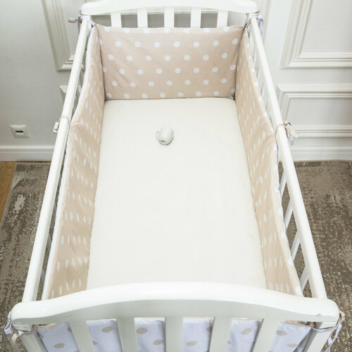 Бортики в детскую кроватку "Горох" сатин 120х35 см-2 шт, 60х35 см-2шт, чехлы съёмные на молнии