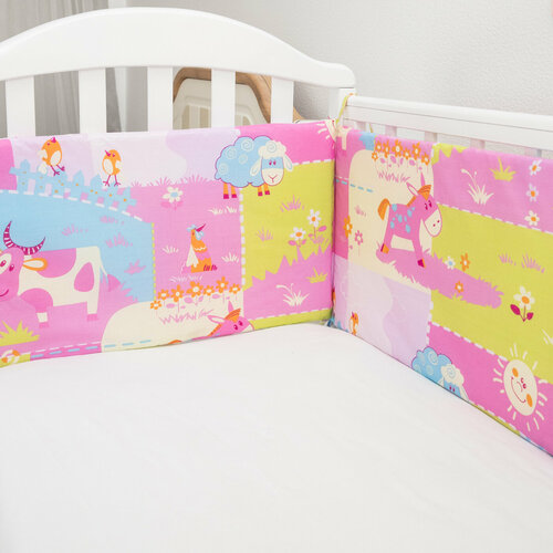 Бортики в кроватку для новорожденных для девочек "Ферма" 120х35-2 шт; 60х35-2 шт. Сатин (Хлопок-100%). Защитный бортик для кровати Baby nice
