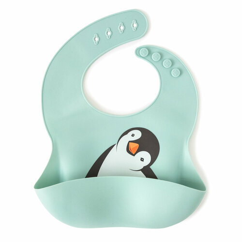 Нагрудник силиконовый с кармашком, Baby Nice, 21х28, "Пингвиненок", мятный