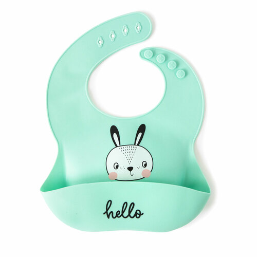 Нагрудник силиконовый с кармашком, Baby Nice, 21х28, "Зайка", бирюзовый