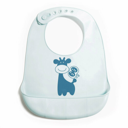 Нагрудник силиконовый с кармашком, Baby Nice, 21х28, "Жирафик", мятный