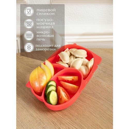 Тарелка детская силиконовая с секциями на присоске, бегемотик, коралловый