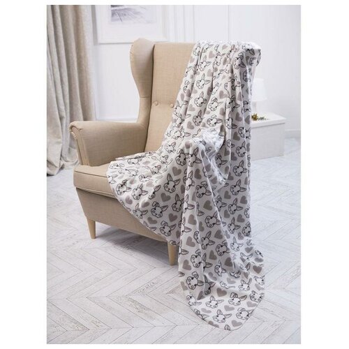 Плед для дивана, на кровать флисовый теплый 130х170 для детей "Виньетки" бежевый Покрывало на детскую кровать