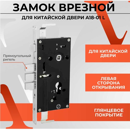 40012 Замок врезной для китайской двери A18-4С L (левый, c прямоугольным риг.) CP (Хром)