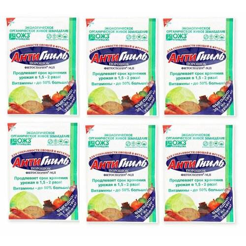 АнтиГниль Фитоспорин-М, порошок - 180 г (6 шт по 30 г) для обработки овощей, ягод, фруктов, защита от порчи и гнили, хранение урожая.