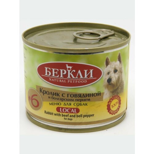 Беркли №6 Влажный корм для взрослых собак и щенков, кролик с говядиной и болгарским перцем. - 6 шт*200 гр Berkley