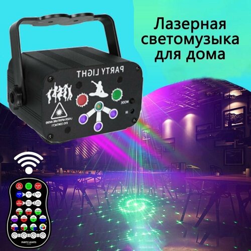 Лазерная светомузыка для дома (8 лазерных лучей, стробоскоп, LED ультрафиолет).
