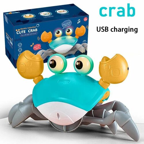 Электрическая игрушка со светом, автоматическим индукционным запуском, краб-осьминог, ползающий и избегающий умной музыки, Зеленый краб