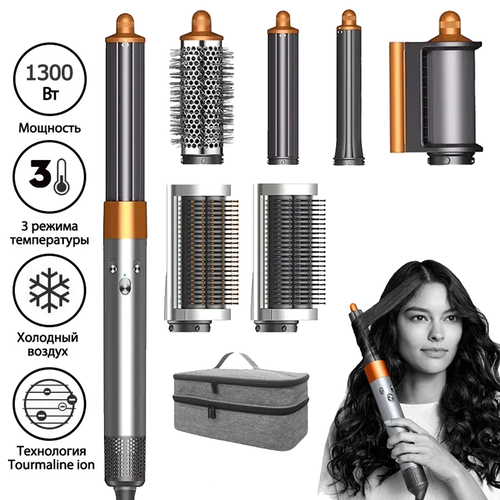 Профессиональный стайлер для волос, плойка для локонов beutyone, с насадками для укладки расческа и фен щетка 6 в 1