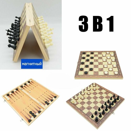 Деревянные шахматы 3 в 1, 24cm * 24cm * 1.5cm