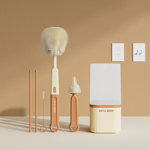 Набор щеток для детских бутылочек с подставкой для сушки, портативная силиконовая щетка для чистки детских бутылочек, силиконовый очиститель пустышек, соломенная щетка