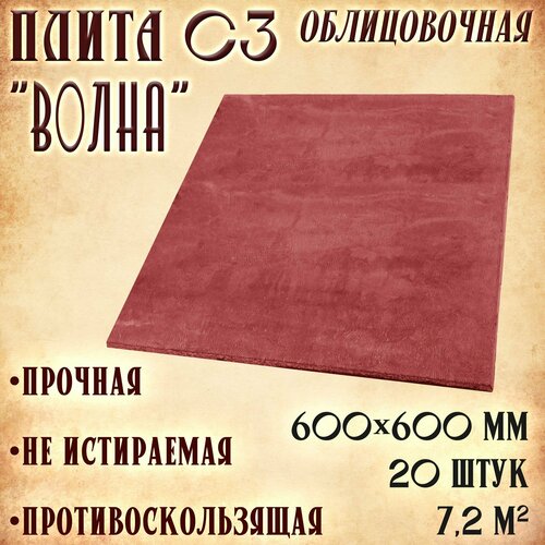Облицовочная плита С3 "Волна" 20 штук (600х600 мм) красная, для лестницы и крыльца