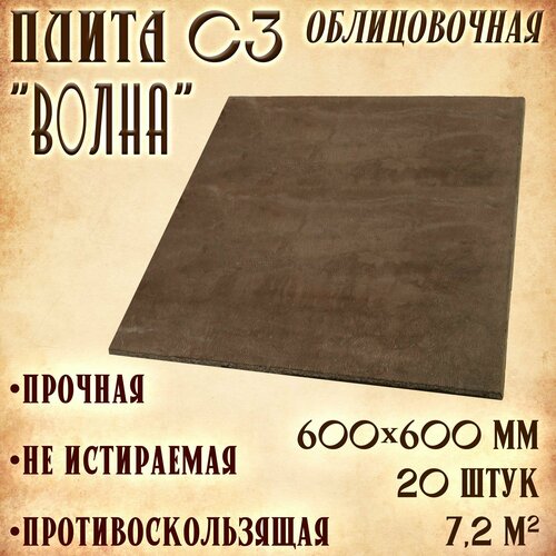 Облицовочная плита С3 "Волна" 20 штук (600х600 мм) коричневая, для лестницы и крыльца