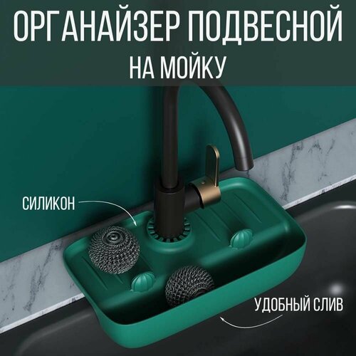 Органайзер для кухни подвесной на мойку, держатель для губки и мыла, зелёный