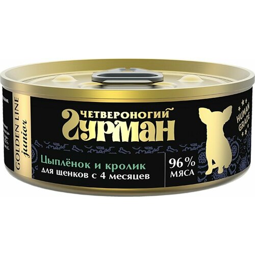 Влажный корм для щенков Четвероногий Гурман Golden line Цыпленок и кролик 100г