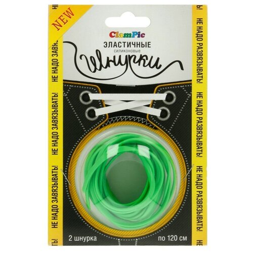 Шнурки силиконовые "ClamPic" (1 пара), 4 мм, 120 см, цвет: зелёный/флуоресцентный