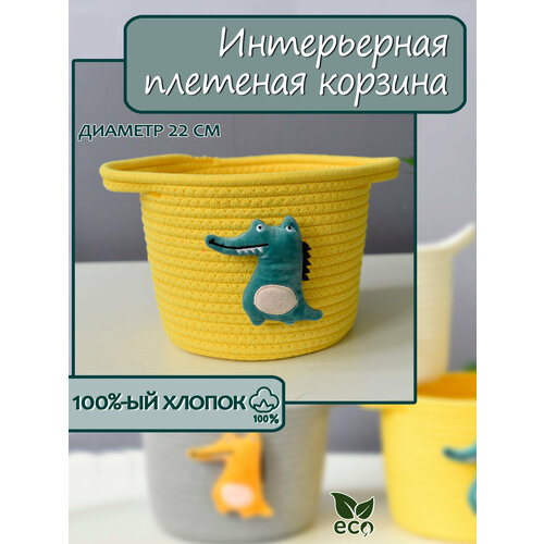 Интерьерная плетеная корзина желтая