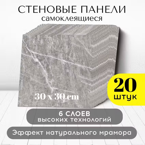Панели стеновые самоклеящиеся декоративные 30*30 см, 20 шт, черный, бежевый, белый Conflate