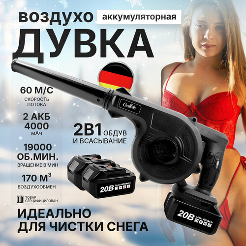 Воздуходувка садовая аккумуляторная, Conflate 2 АКБ, турбовентилятор, ветродуйка, для уборки снега, листьев