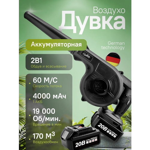 Воздуходувка садовая аккумуляторная, Conflate 2 АКБ, турбовентилятор, ветродуйка, для уборки листьев