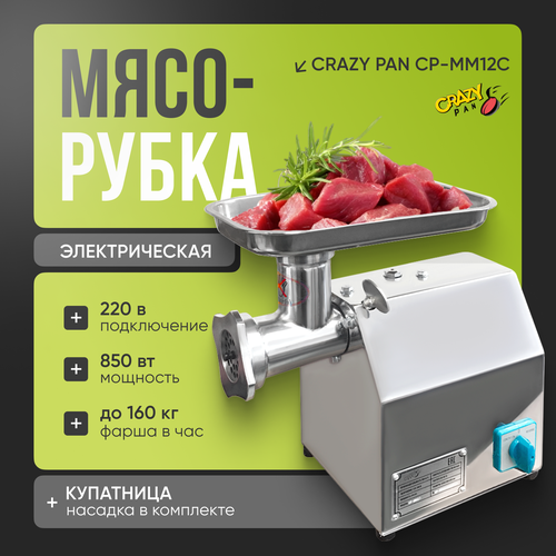 Мясорубка Crazy Pan CP-MG12C, реверс, 0.85кВт, 220В, корпус из нержавейки, 160 кг/час