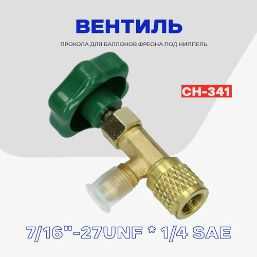 Вентиль CH-341 прокола для фреона в баллонах под ниппель 7/16"-27UNF на шланг 1/4SAE