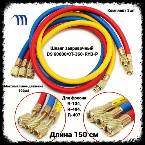Шланги заправочные R-134, R-404, R-407 (150см) DS 60600 комплект 3 шт