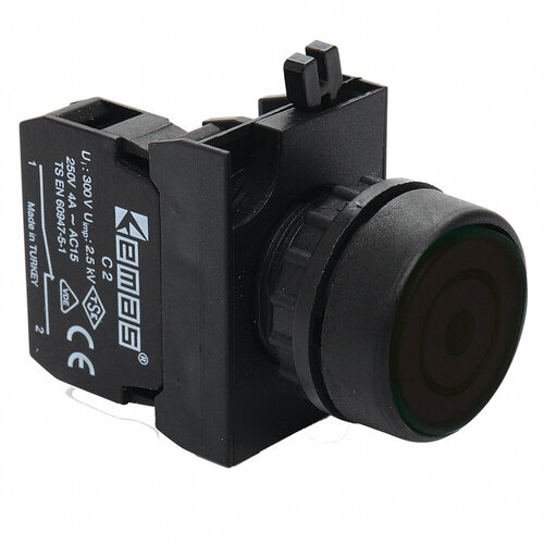 Emas Кнопка нажимная круглая чёрная, с фиксацией, 1НО, серия C, 250 В AC, 4 А, CP100FH