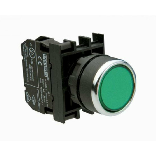 Кнопка нажимная Emas B100DY круглая зеленая (1НО)