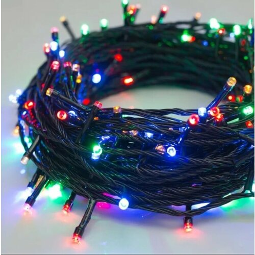 Гирлянда 180 ламп черный, цветной свет (100) 10 метров
