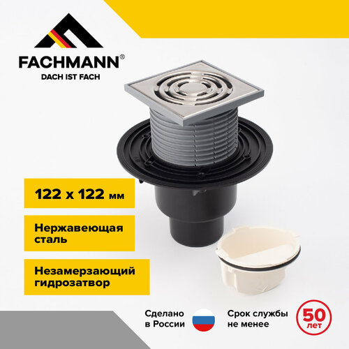 Fachmann Парапетная воронка для полимер-битумной изоляции с листвоуловителем и отводом, VC-PP 100X100650 , 01.068