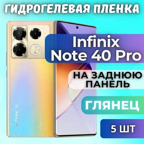 Комплект 5шт. Защитная гидрогелевая пленка на Infinix Note 40 Pro 4G/5G / глянцевая на заднюю панель / Противоударная бронепленка с эффектом восстановления на Инфиникс Нот 40 Про 4Г/5Г