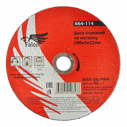 Диск отрезной по металлу 180х3,0х22мм FALCO 664-114