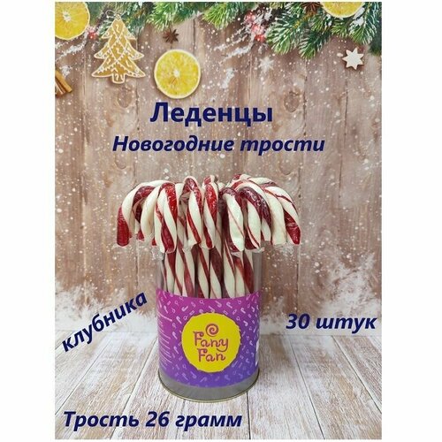 Карамель леденцовая натуральная фигурная в форме Трость малая 26 гр * 30 шт, вкус: клубника