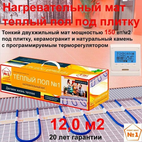 Теплый пол электрический нагревательный мат "Теплый пол №1", 12,0 м2 с программируемым терморегулятором Е51