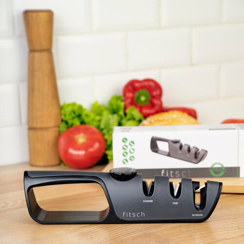 Ножеточка универсальная FITSCH Точилка ручная механическая для ножей, ножниц и инструментов с регулировкой угла заточки, 3 этапа заточки