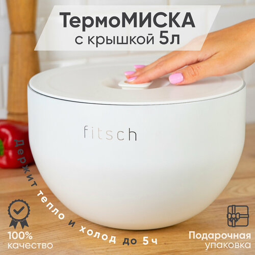 Термомиска с крышкой FITSCH, нержавеющая сталь, нескользящая, 5 л белая
