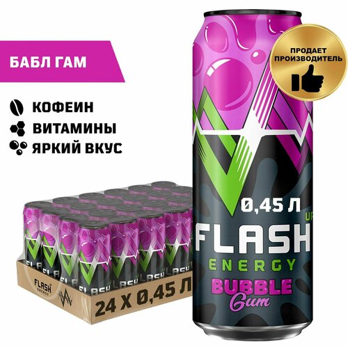Flash Up Energy "Bubble Gum", энергетический напиток, 24 шт х 0.45 л, банка