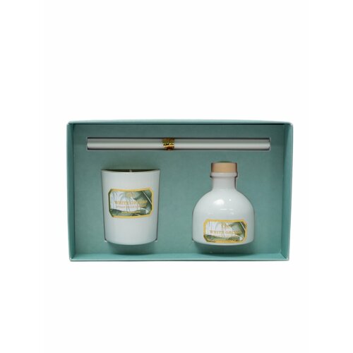 Набор диффузор для дома 50мл с палочками и ароматическая свеча с ароматом Белой Орхидеи
