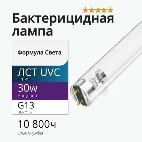 Лампа ультрафиолетовая Формула света 30Вт T8 G13 , без озона, бактерицидная для рециркулятора дезинфицирующая, сменная УФ лампа для дезинфекции и обеззараживания воздуха
